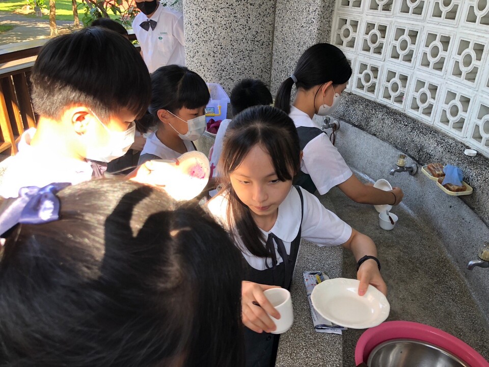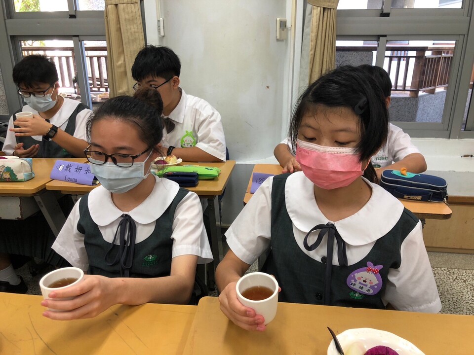 5、全班都拿到點心.茶水後,式範教導孩子如何持杯、喝三好茶(口說好話 心想好意 身行好事)、用點心後,全班再統一用點心。