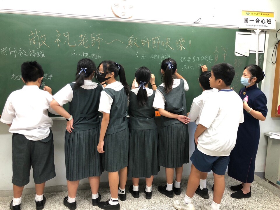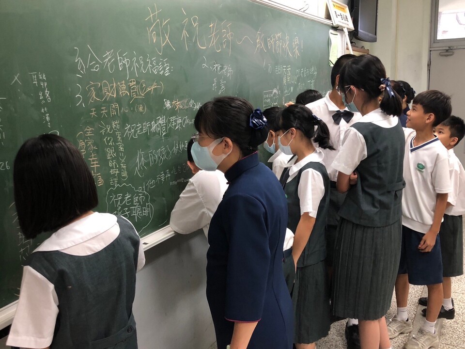 以家族為單位,讓每位孩子在黑板上寫下「給導師的一句話」。