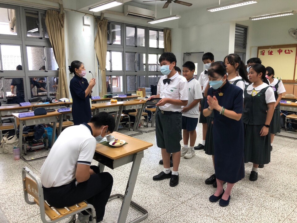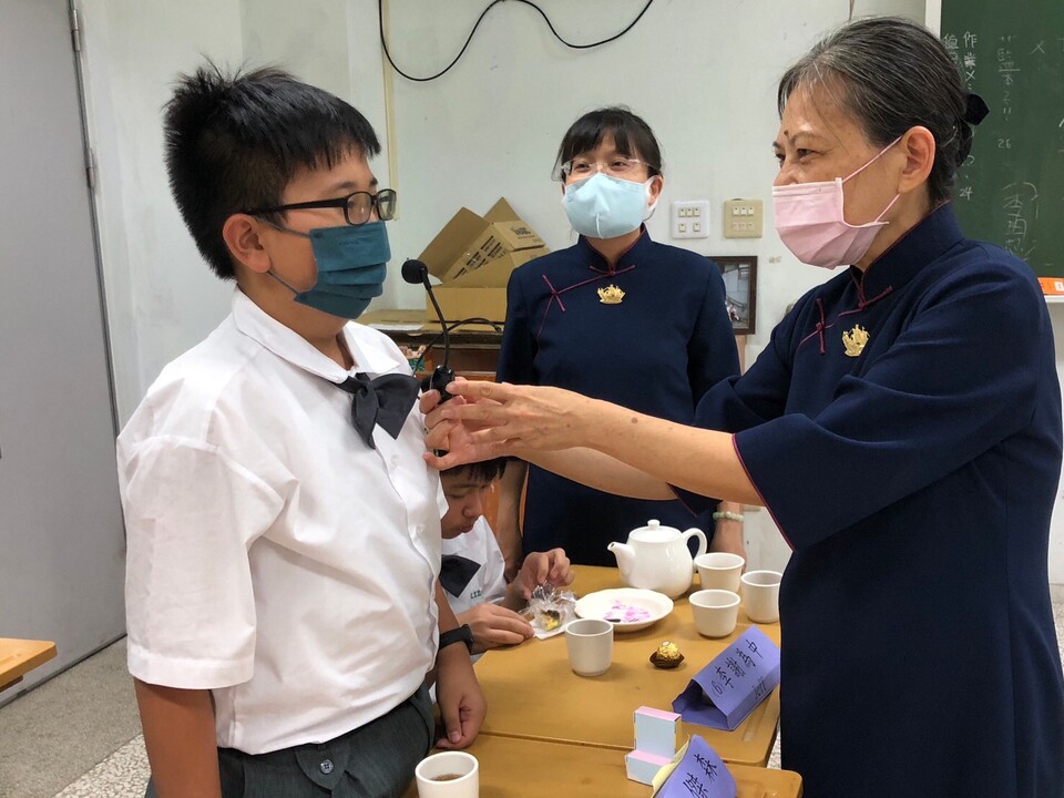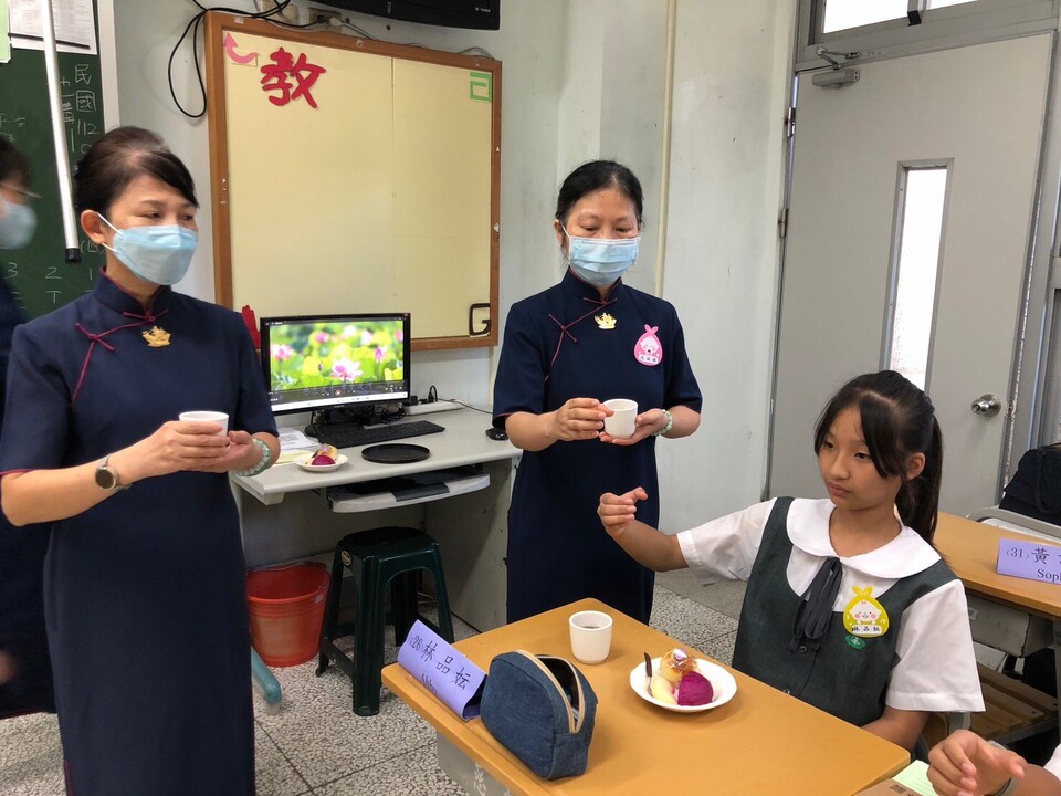 4、行禮完後同一家族請爸爸.媽媽帶教室外領茶水.點心後,帶領入座(先不用點心茶水)。