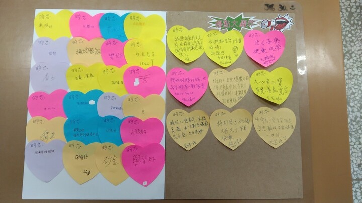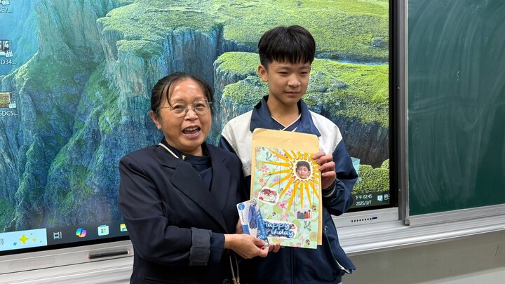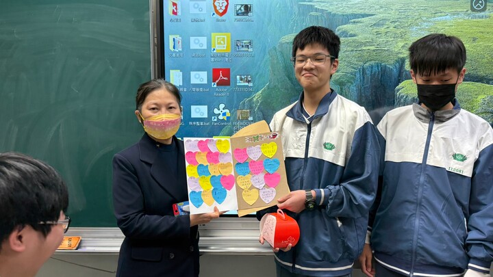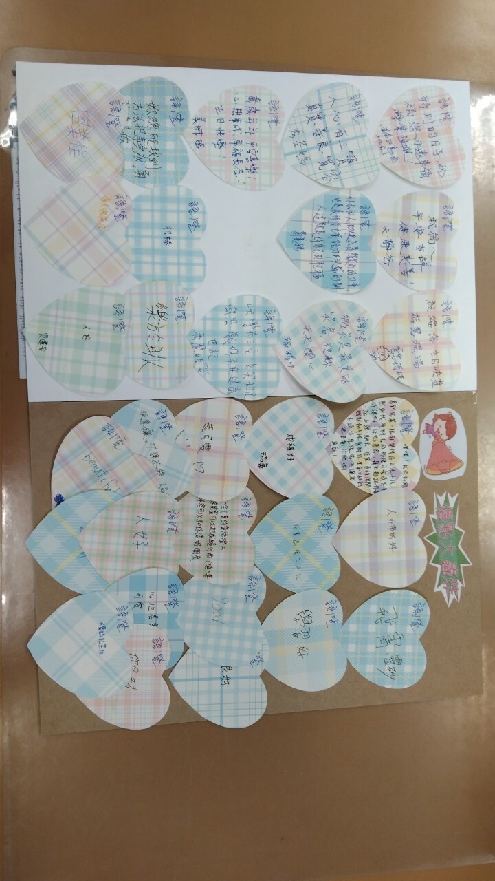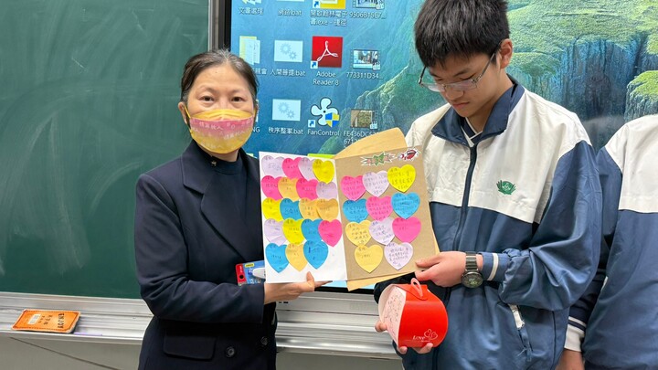 國二合心班3月7日懿德日由於寒假期間及開學第一次懿德日特別為去年12月今年1、2、3月壽星辦理慶生,同時也是導師的生日,媽媽特別為生日的老師、孩子製作每人不同的一大張卡片,又讓每個孩子都給予滿滿的祝福。