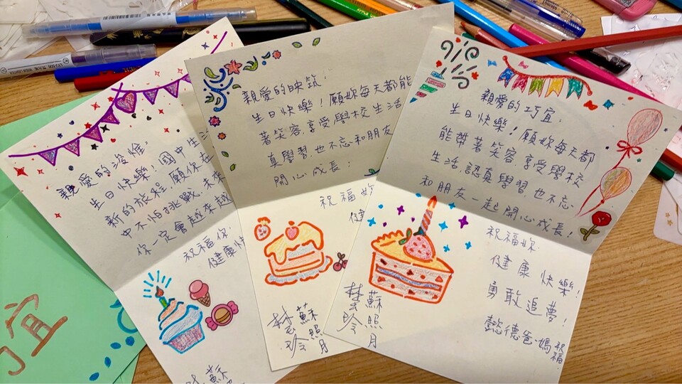 今日進班後,首先8~11月慶生,由爸爸媽媽們親筆簽名的祝福卡片,上面還有滿滿的祝福話語,除了同學們,宥蓁媽媽也是壽星之一。