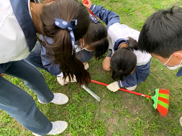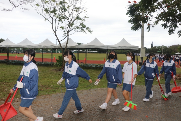 接著,俊賢老師跟孩子們解說今天打掃的區域還有注意事項,大家就到操場集合出發了。雖然集合過程中飄起了小雨,但正式打掃時是舒服的陰涼天氣。