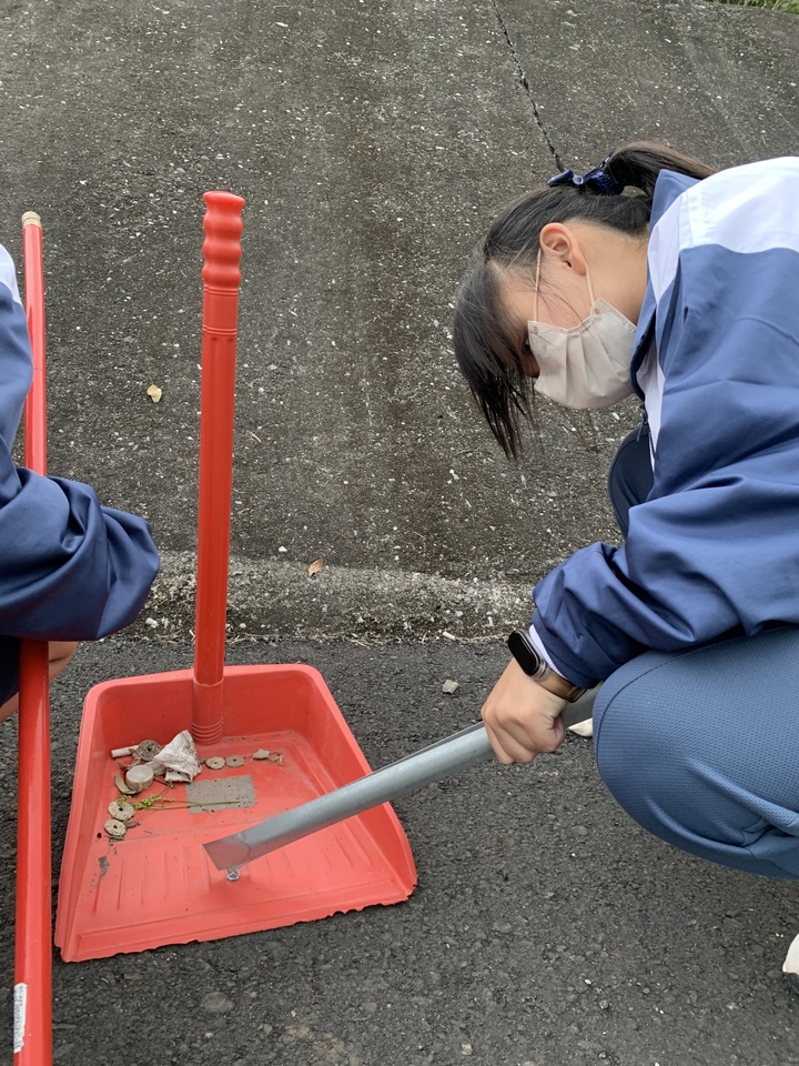 包容班打掃的是花蓮體育館對面的河堤,看似不遠,從學校徒步走過去,來回也有三公里路程。