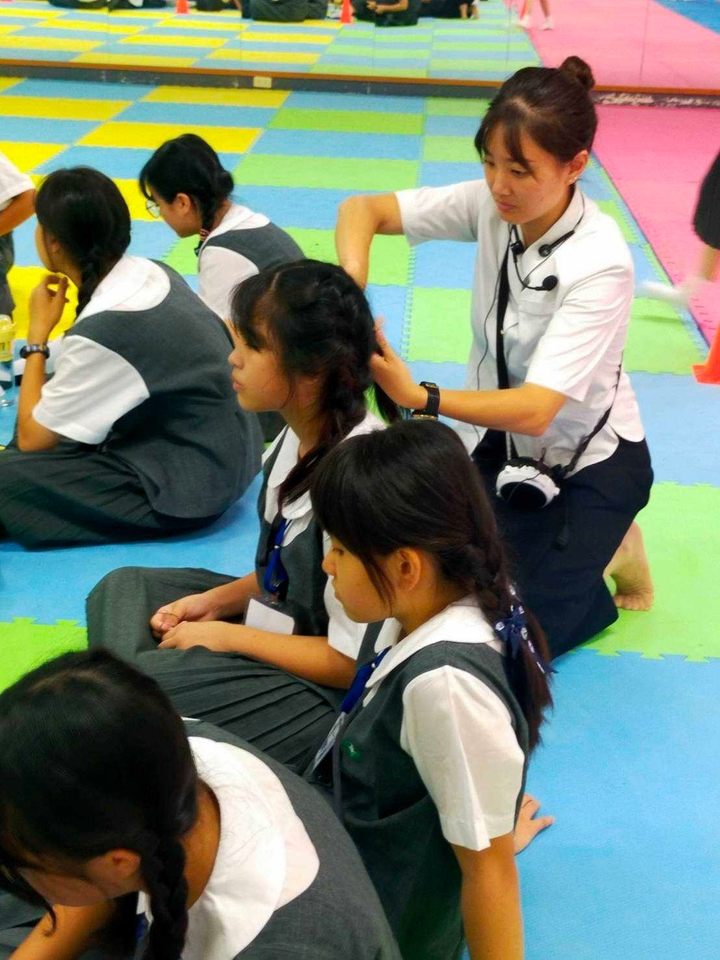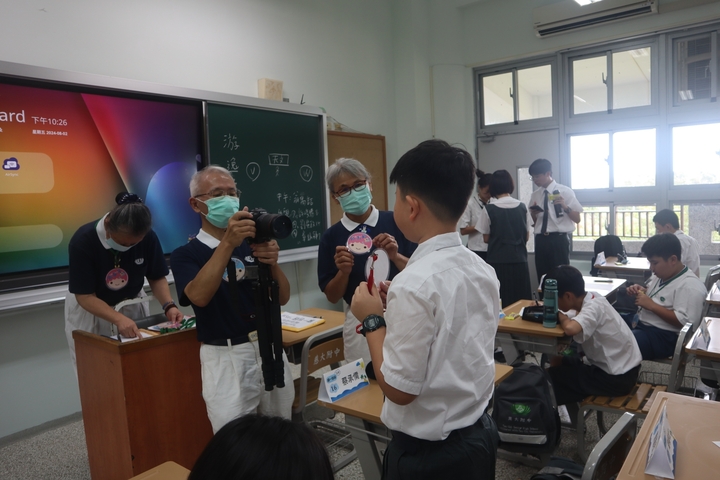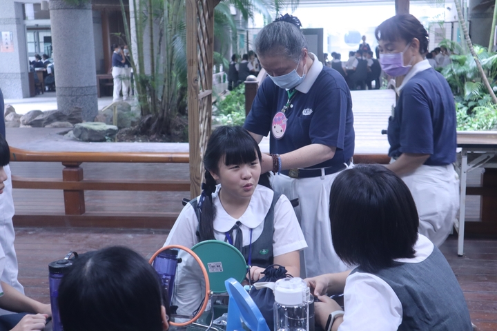 在學校用心的規畫分站活動,3個小時內必須完成7個站;除了第二站在演藝廳,由學長、學姊教唱慈中校歌,可以短暫休息外,其餘每站都是20分鐘的課程時間,再加上5分鐘的換站時間;包容班的36位孩子,就在逸柔老師的陪伴與班長楊霓渟的帶領下,一站一站的圓滿此次的新生營分站活動。而朝任爸也把握因緣的在第三站換站時間,迅速地完成了包容班新鮮人的大合影呢!