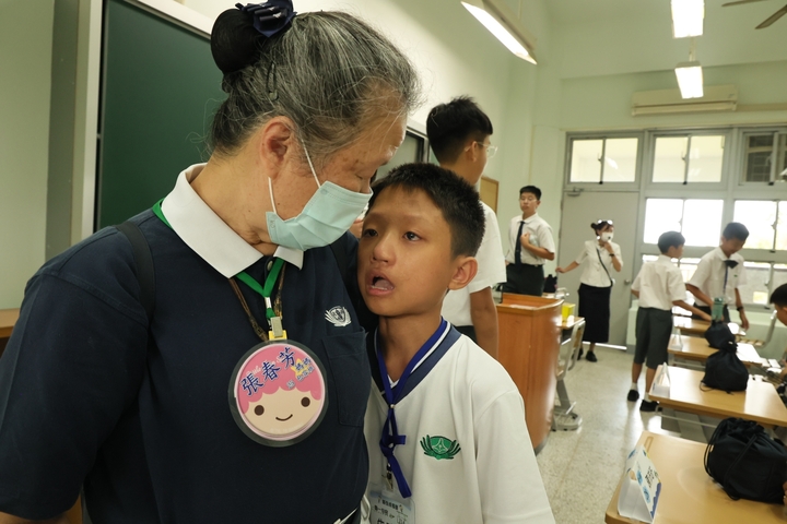 今天行程緊湊,大伙一早到校後即依懿德會分配,到位於科學館一樓(找了好久)的「食~食在好人文」分站協助善解班懿德爸媽場佈。11:00回到班上與孩子們相見歡,本次由春芳媽負責課務。由於考量九月份的慈懿日是敬師活動,可能沒有太多時間拍個人照,而且今天孩子的出席率較高;因此,我們一進班,先簡單表明身份,隨即發名牌、五指圖,由春芳媽說明五指圖的書寫方式與內容;拿到名牌的孩子,先請朝任爸拍個人照,其他孩子開始寫五指圖,同時由永瑞爸負責拍孩子在寫五指圖的神情(這些都是以後手工書珍貴的圖像紀錄)。朝任爸在美齡媽的協助下,迅速的完成了今天36位到校孩子的特寫(3位請假的孩子分別是黃鈺誠、陳依婕、趙亭雲);同時,綉滿媽也迫不及待的向幾位孩子表達關懷之意,並即時留下青春的臉龐印記!春芳媽也期許孩子們都能安住心在學校學習,生活與課業上有甚麼問題,都可以向師長請教,希望三年後我們包容班的39位孩子可以一起畢業!