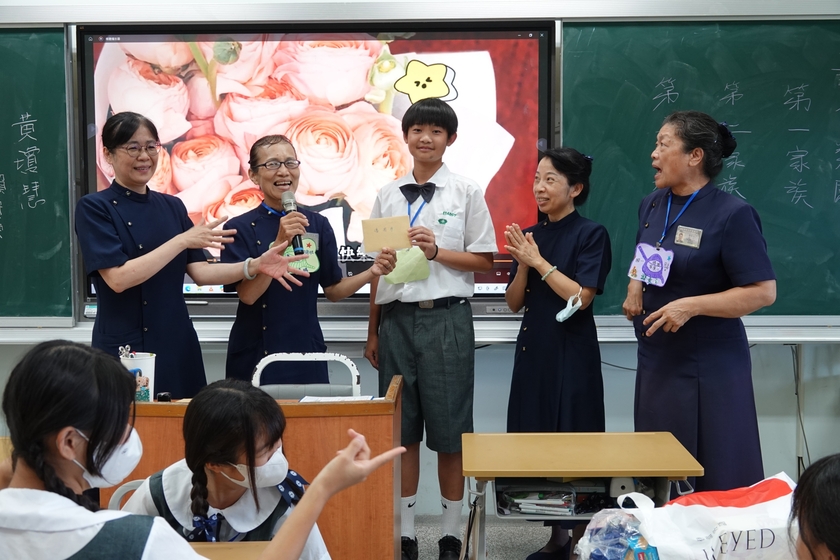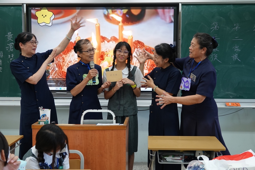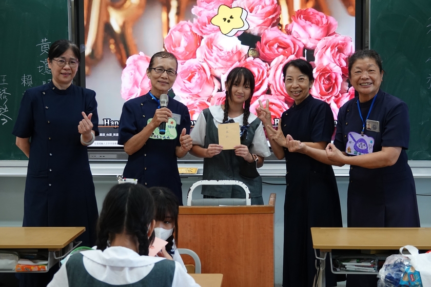 花蓮光復鄉因樺加沙風災的關係而成災區,復原的路有如隧道口還看不到盡頭。綉琴媽媽播放堰塞湖的形成,瞭解人無法勝天,要虔誠敬天愛地;素月媽媽分享做鏟子超人的心得,坐在台下的孩子們靜默的聽著。正值青春年少,不識愁滋味,彷彿身歷其境,感受到鄉親的痛。綉琴媽媽問,「你們没有去當鏟子超人,那可以用什麼方式來幫助他們呢?」很想去幫忙,但現階無法實現,孩子們沉默不語。綉琴媽媽說,「祈禱」!為孩子埋下一顆善種子,期待它有一天開花結果。