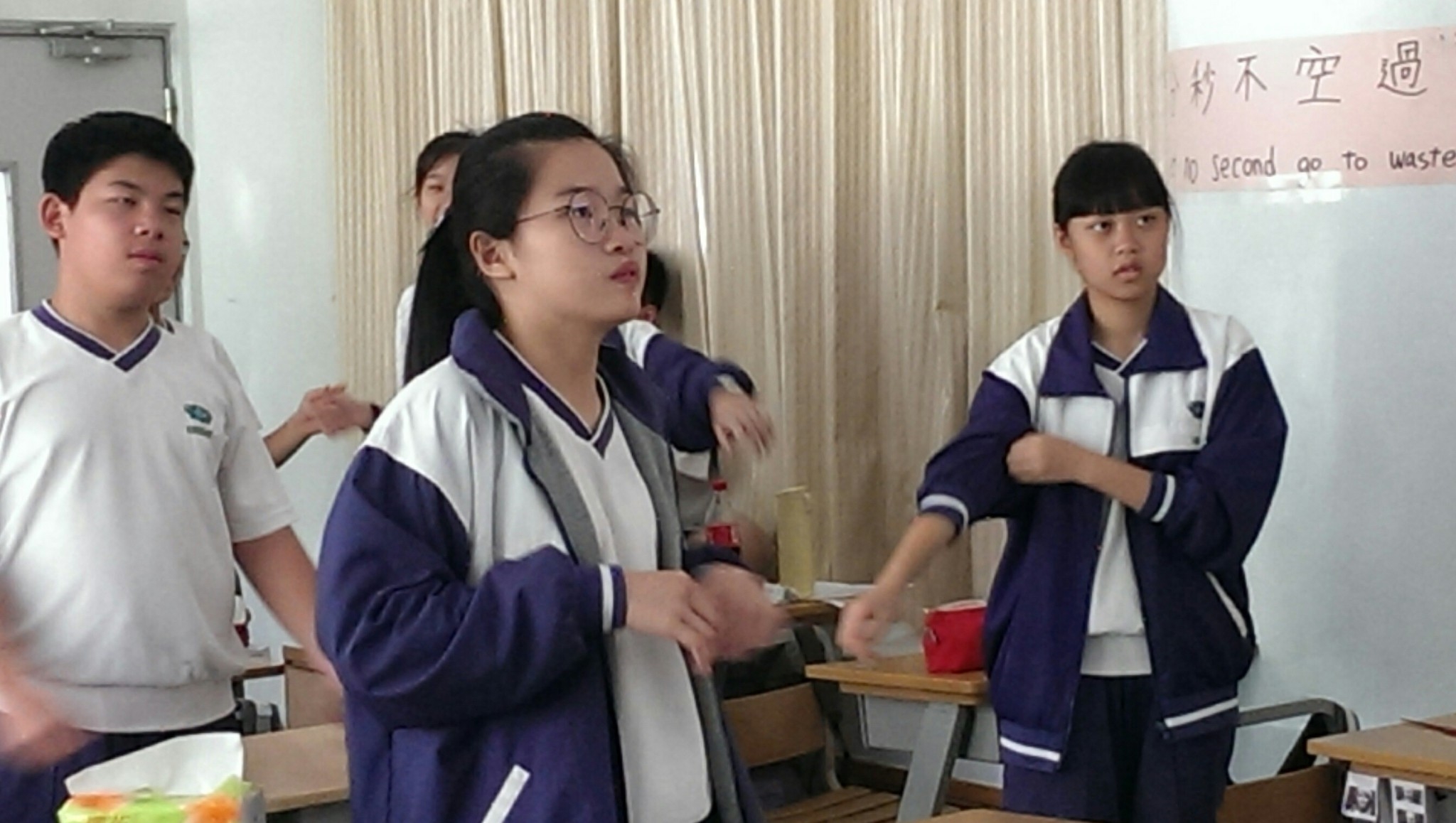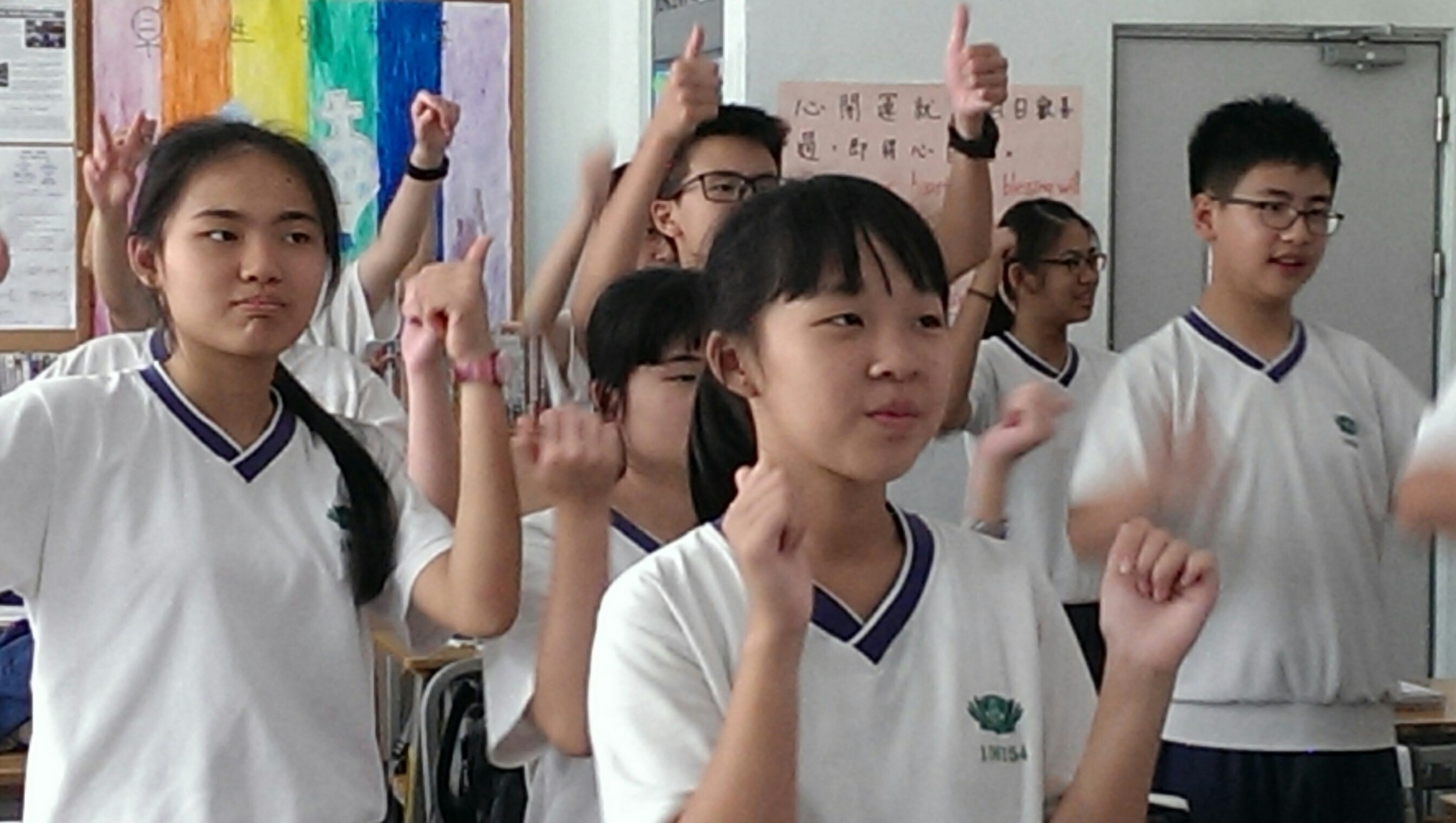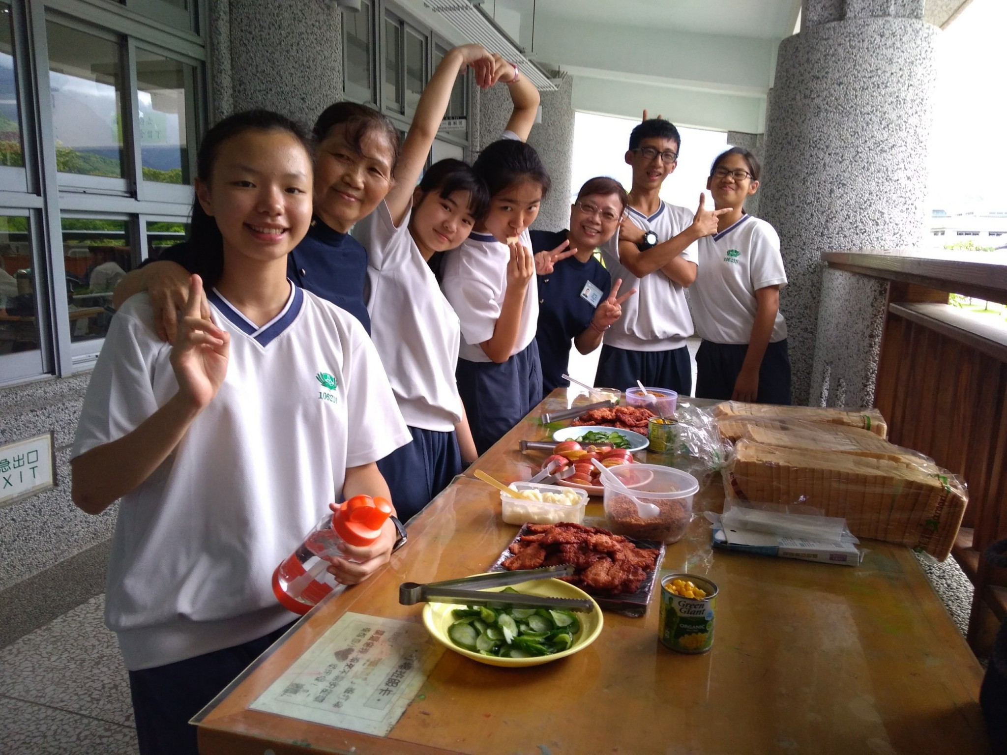 2018.06.08 國一善解懿德日:在呷菜尚介讚的手語帶動中,帶入此次課程主題,同學自己DIY手作蔬食三明治,品嚐蔬食也有好味道。