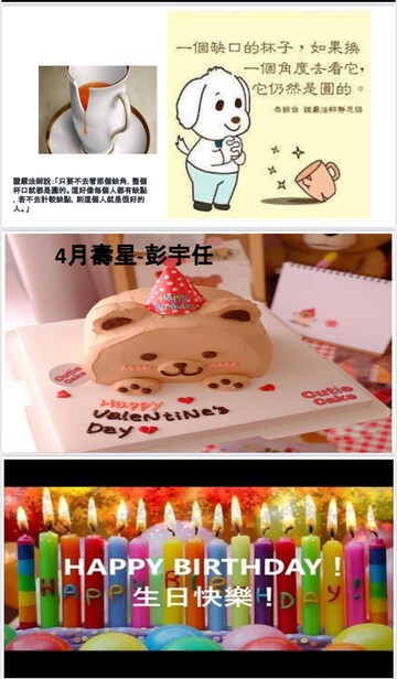 緊接著就是要祝福四月份壽星:彭宇任「生日快樂」,大家一起為壽星唱生日快樂歌;禮物和卡片已事先送到老師手中,視訊現場由老師轉交!