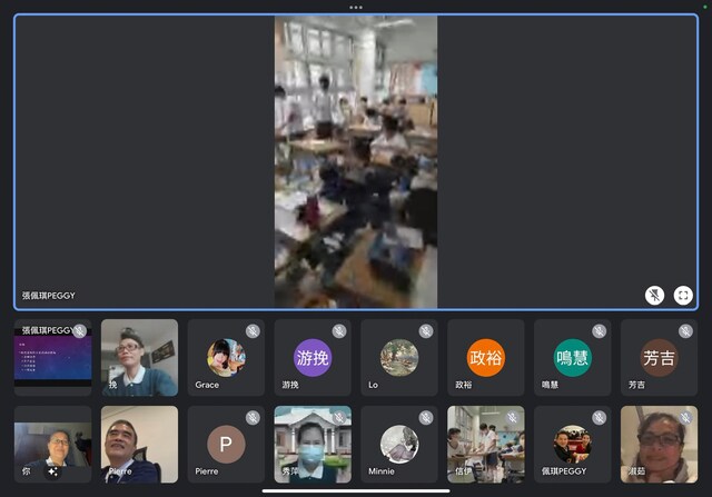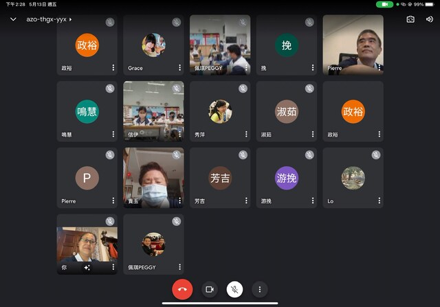 此次懿德日~因疫情非常嚴峻的緣故,只能繼續以視訊連線方式與佩琪老師及孩子們見面,感恩老師及幾位孩子們一起幫忙架設電腦及使用手機使我們能夠及時與教室裡的孩子們互動。