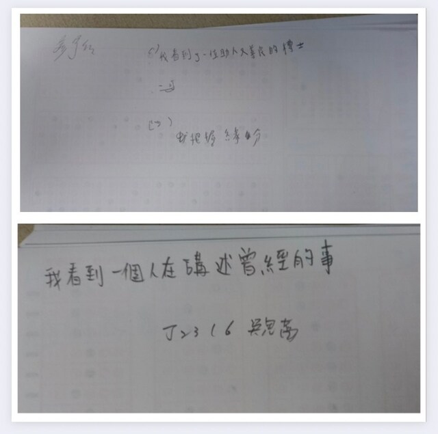 •開始看片時請大家準備紙及筆,看完後給大家三分鐘,寫下您看到什麼?人人都要寫。