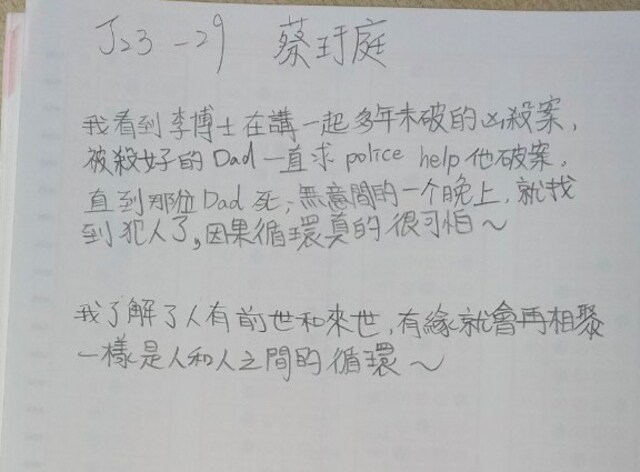 老師回覆:他們只單純回答看到什麼,沒有幾個人回答心得。而且一大堆錯字。快昏倒