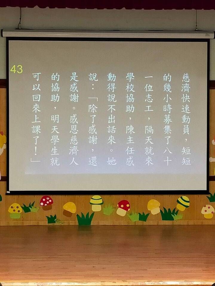 校長以自己的腳況勉勵學子,「現在我全身除了腳不好,其他都是好的健康的,還是可以發揮良能去付出造就人才;孩子們,你們千萬不要因為一科不好,就放棄去追求開展自己美好的人生。」校長用菩薩的智慧、媽媽的真心,字字句句道出對孩子們的期許,令人感動。