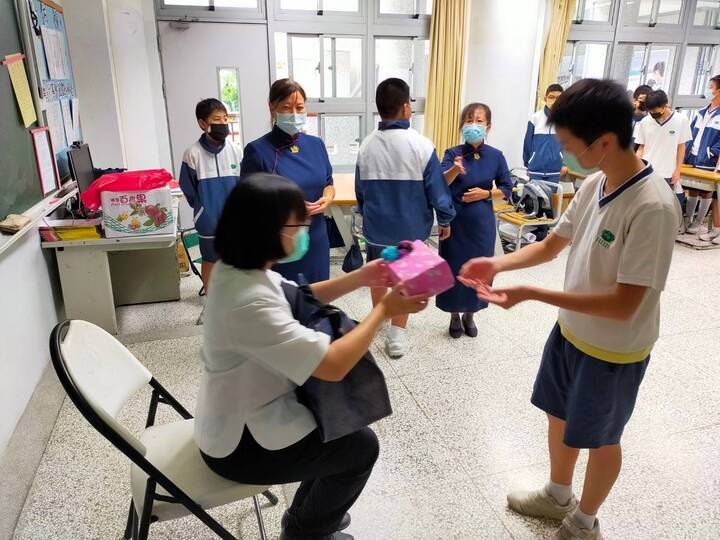 看著老師笑意盈盈微泛紅的眼眶,即使帶口罩都可感受到老師真情流露帶來的欣慰與喜悅。敬師謝師圓滿成功。