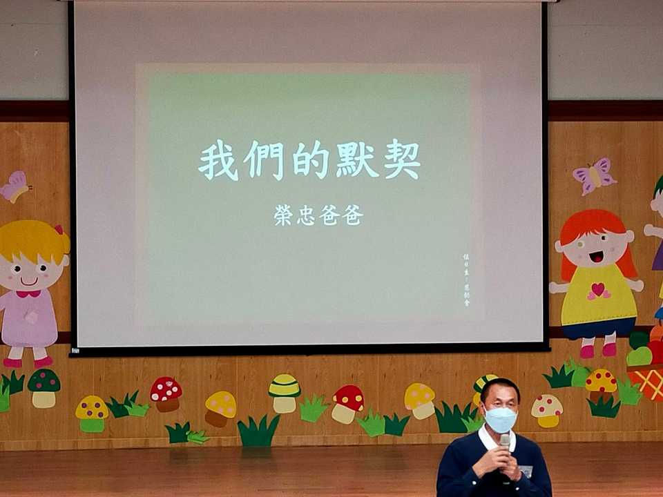 語畢禮謝主任時,可愛的司儀芸瑄加碼暴料主任不為人知的一面。原來芸瑄曾被主任教過還承擔過數學小老師,主任最讓學生敬仰的是人文素養及人生價值觀,且發自內心很愛學生。主任也感到欣慰今天是由自己教過的學生介紹出場,讓我們這些在台下的爸媽們看到最温馨動人的師生相敍,也看到代代傳承愛的接力與希望。