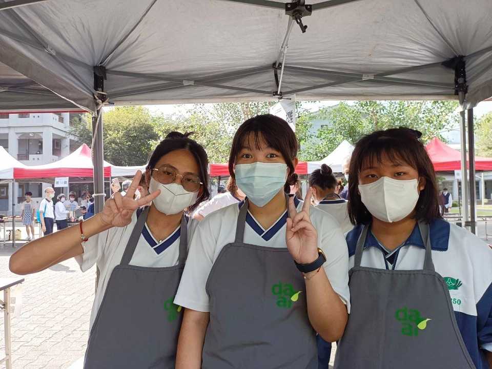 ※孩子們手作速度飛快,不下30鐘,60片河粉即全部用罄,將其整齊裝盤後,孩子便托著戰利品前往福田廣場擺攤,準備開始義賣。在孩子們的用心兜售下,本班100份御飯糰、40份素丁香、50多份河粉捲全部完售,募得愛心款項NT$20000。