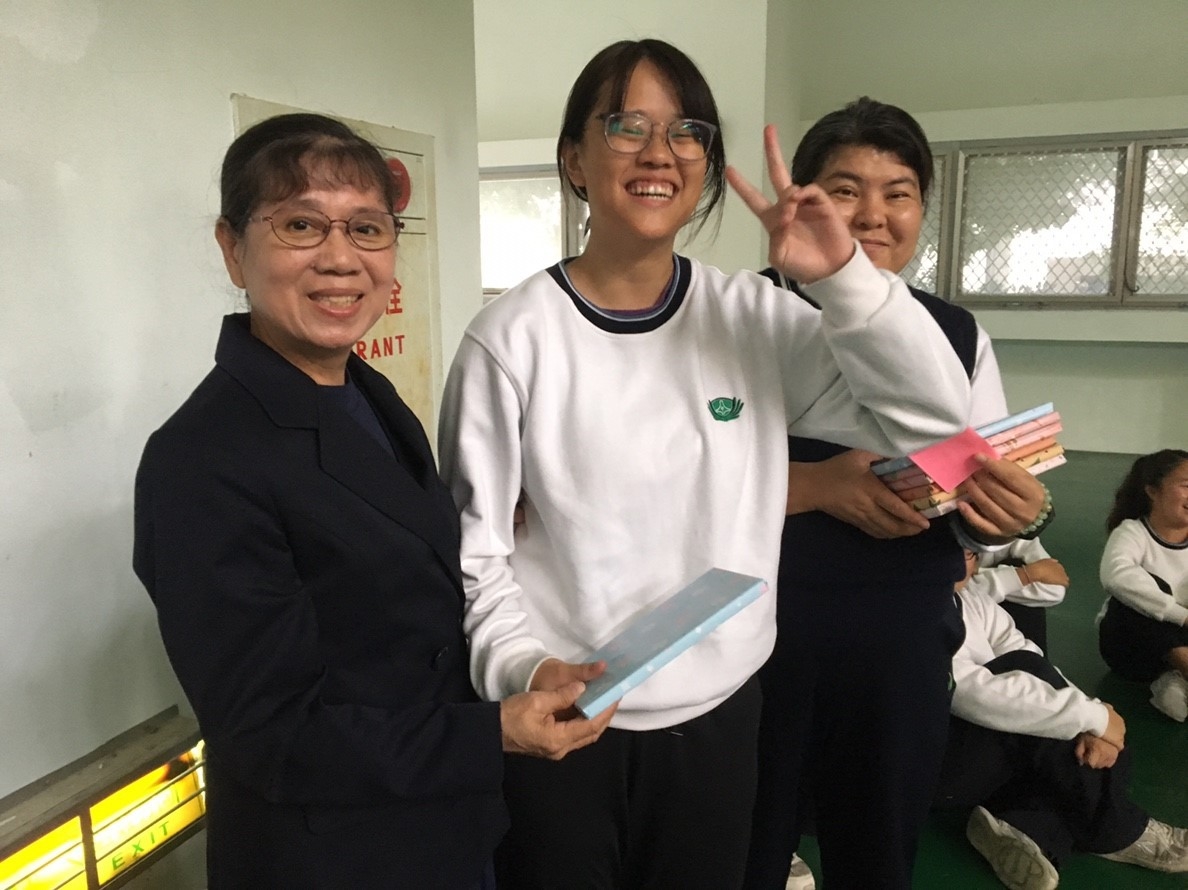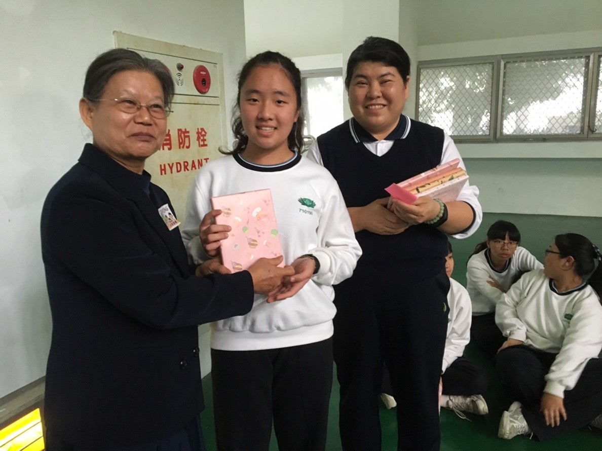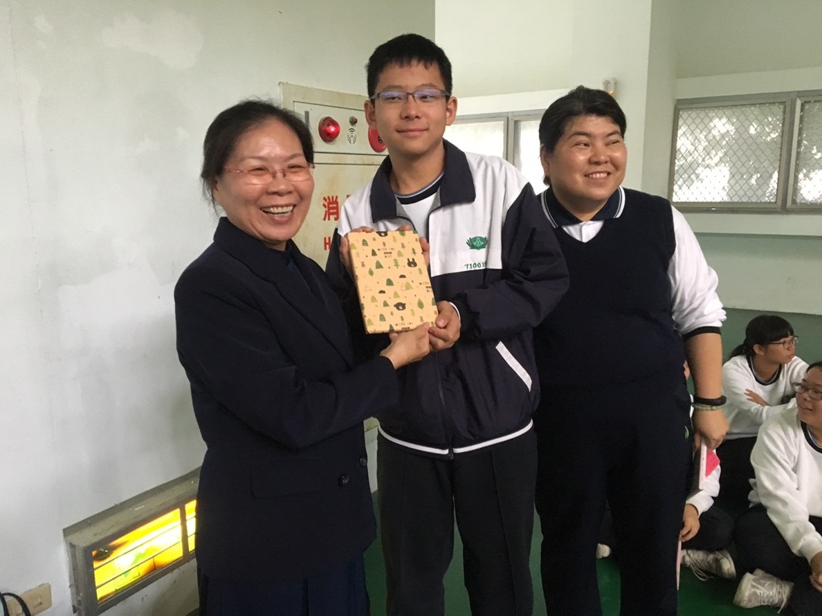 這學期開始有與老師共識,希望獎勵孩子,禮物由懿德媽媽提供,用甚麼方法如何贈送由老師來決定,11月份老師贈送班上前3名的孩子,也告訴孩子,這是懿德媽媽給你們的鼓勵,老師告訴孩子,12月我們要頒發的是進步獎,誰進步分數最多有禮物,沒有想到孩子們,真得幾乎都進步了,只是分數多或少而已,分數進步39分至22分的孩子,老師選出了進步最多的孩子有8位,一本筆記本居然能鼓勵孩子向上的心,真是太感恩了。