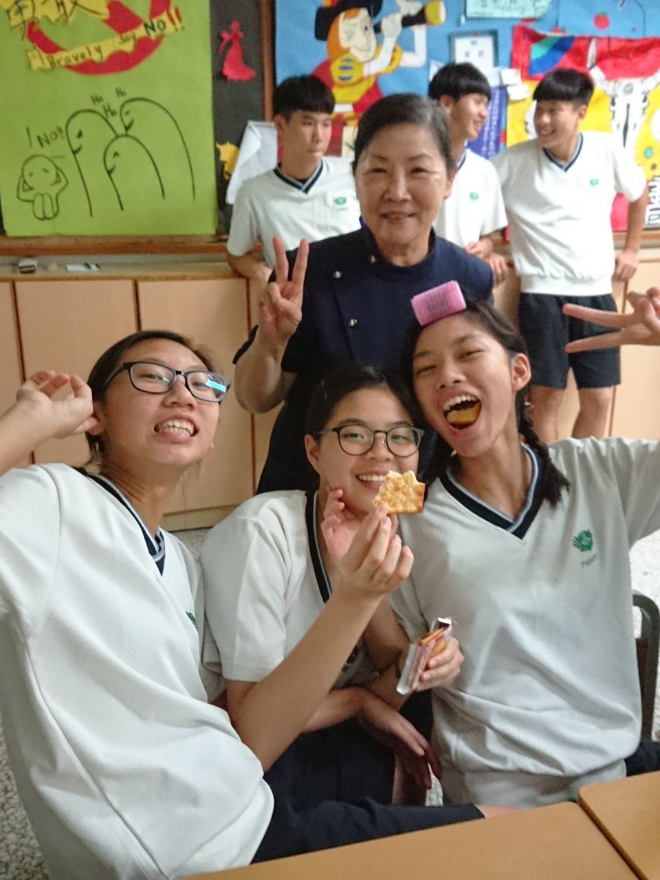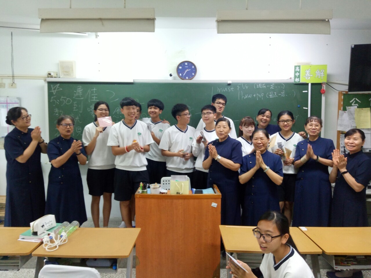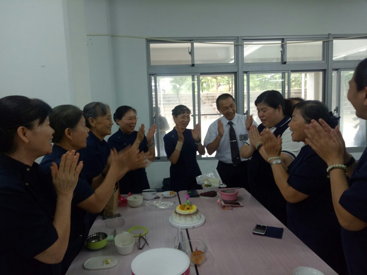 今天中午懿德媽媽們為老師慶生,其實老師的生日是在8月份,但因8月份我們沒有懿德日,今天大家共同為美燕老師提早慶生,為老師祝福,願老師健康幸福平安。