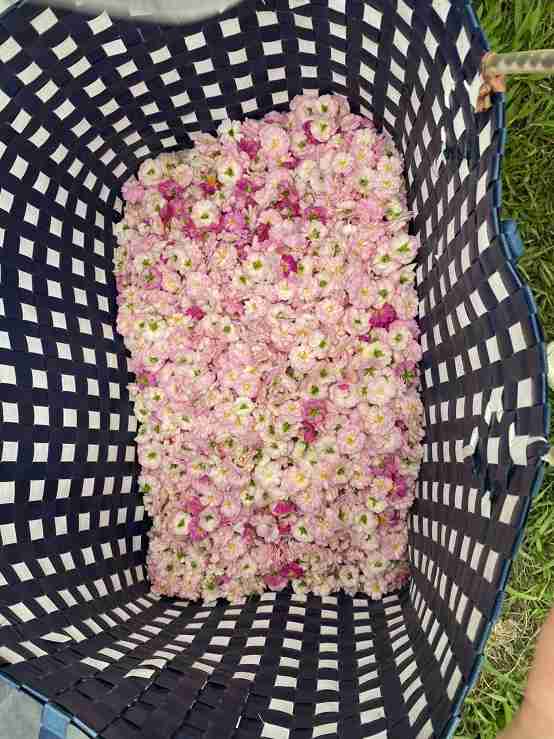班上媽媽三人ㄧ組,進入園區採收玫瑰花。因之前有人告知,玫瑰好多刺,容易被刺傷,也因為有前人的提醒,讓自己更加小心。其實採玫瑰花,要採得合乎標準,也要懂得方法,才能將整株的花採起;知道方法,越採越歡喜,不知不覺中一片的玫瑰園區,已被所有參與的媽媽們採光了。