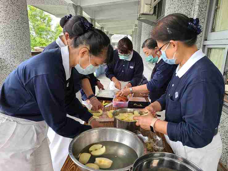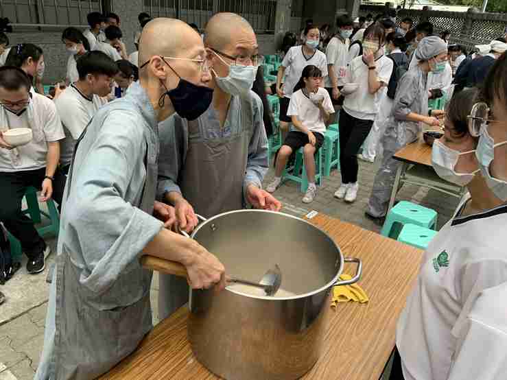 也看到精舍師父們為慈中的孩子.老師們,與懿德媽媽們,準備了豐富的早餐,真是辛苦師父們啦。因剛好又是太魯閣意外事故,師父們已忙錄好幾天了,今天還要為慈中所有參與者,忙碌了一早上,看了真不捨。