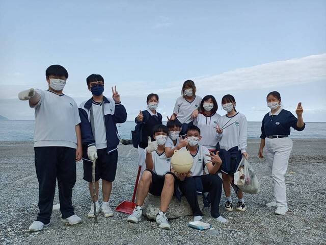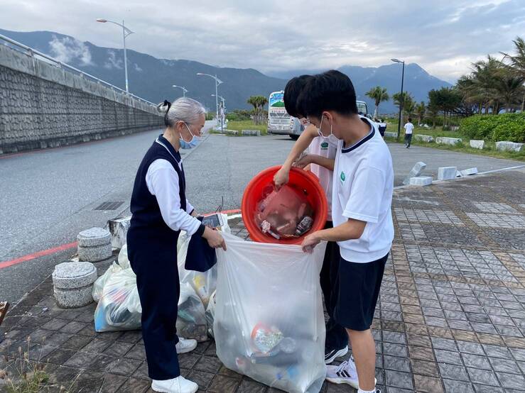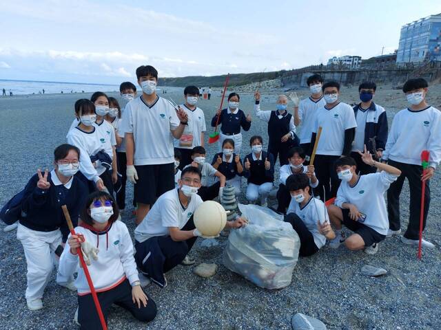 3.下午2:50我們準時坐上車抵達七星潭淨灘,每位孩子很用心地將沙灘上的廢棄物撿起,有各式各樣的物品,最後大家在聚集的垃圾前大合照,除了淨灘外,我們也藉機欣賞到七星潭的海景,是一個有意義又愉快的下午。