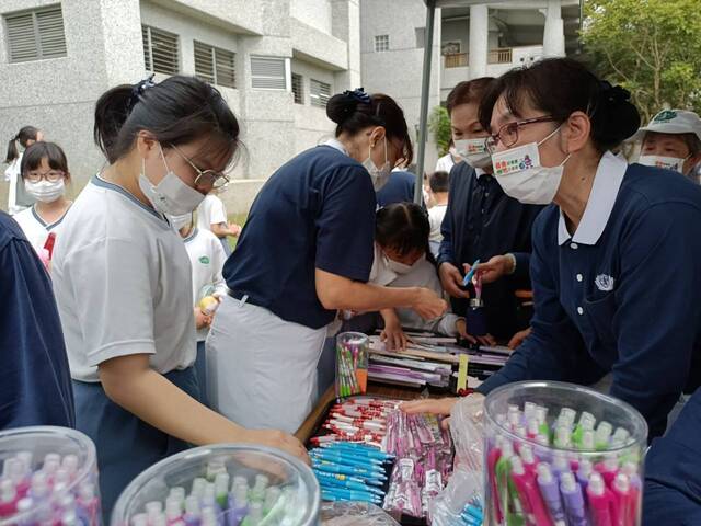一開始是每個班級的特色進場,我們班帶領的兩位穿著和服,其餘同學則是臉上畫了圖騰,高中部的武林高手整齊的表演更是令人驚歎,媽媽們也開始為義賣忙碌起來,這次義賣的文具最受小學部學生青睞,其中最令人印象深刻的是一位小女生用1000元買了100支尺,表示要捐至烏克蘭,也因此帶來了更多小孩來光顧。