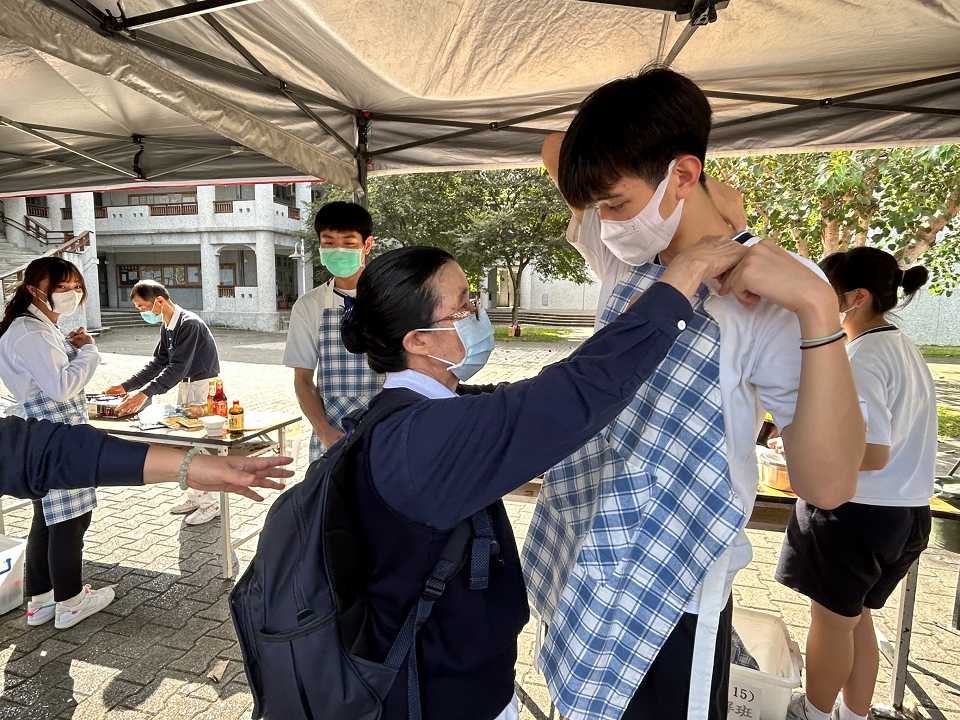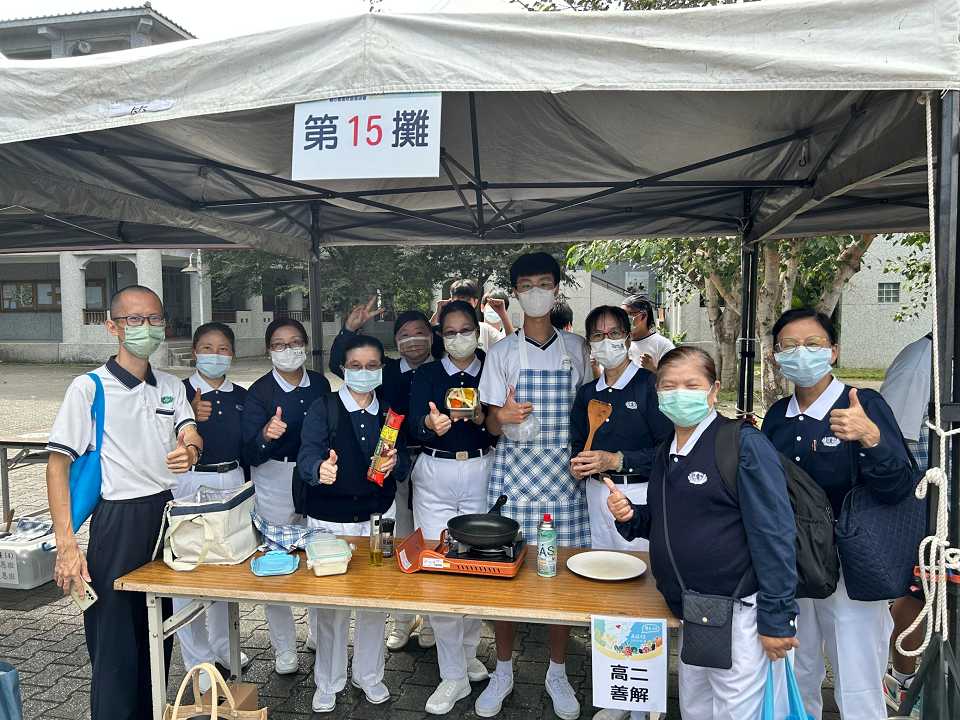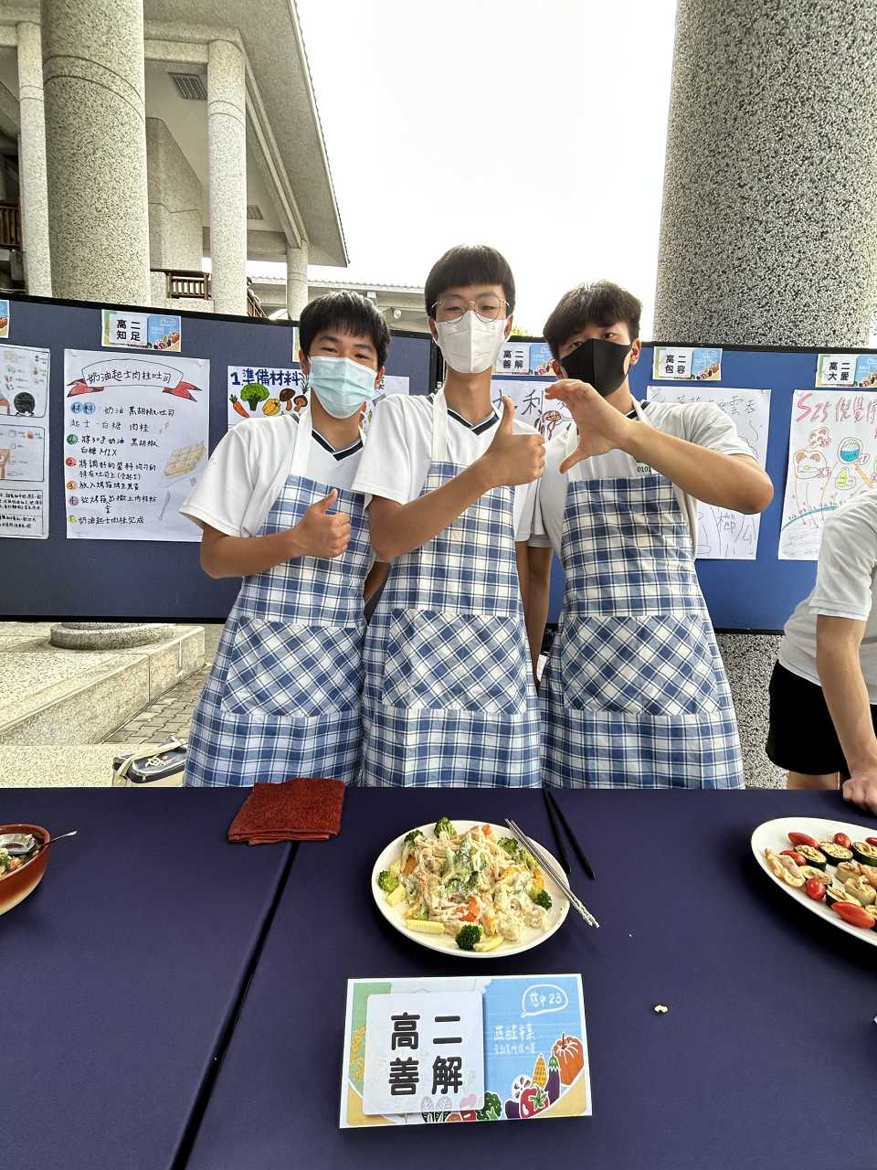 ◎緊張緊張、刺激刺激,熱鬧滾滾的「慈中23~蔬醒市集暨創意料理比賽」在天文館-志玄樓前登場了。我們班要參賽的佳餚是「『義』想不到—彩蔬義大利麵」,掌廚的是汪辰曄(隊長)、李振睿和韓丞宇,由美鳳媽媽媽和麗華媽陪伴。看他們胸有成竹的切、煮,讓媽媽們很放心。