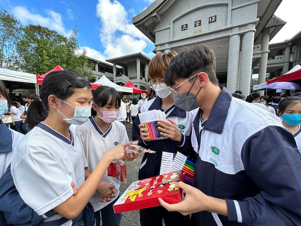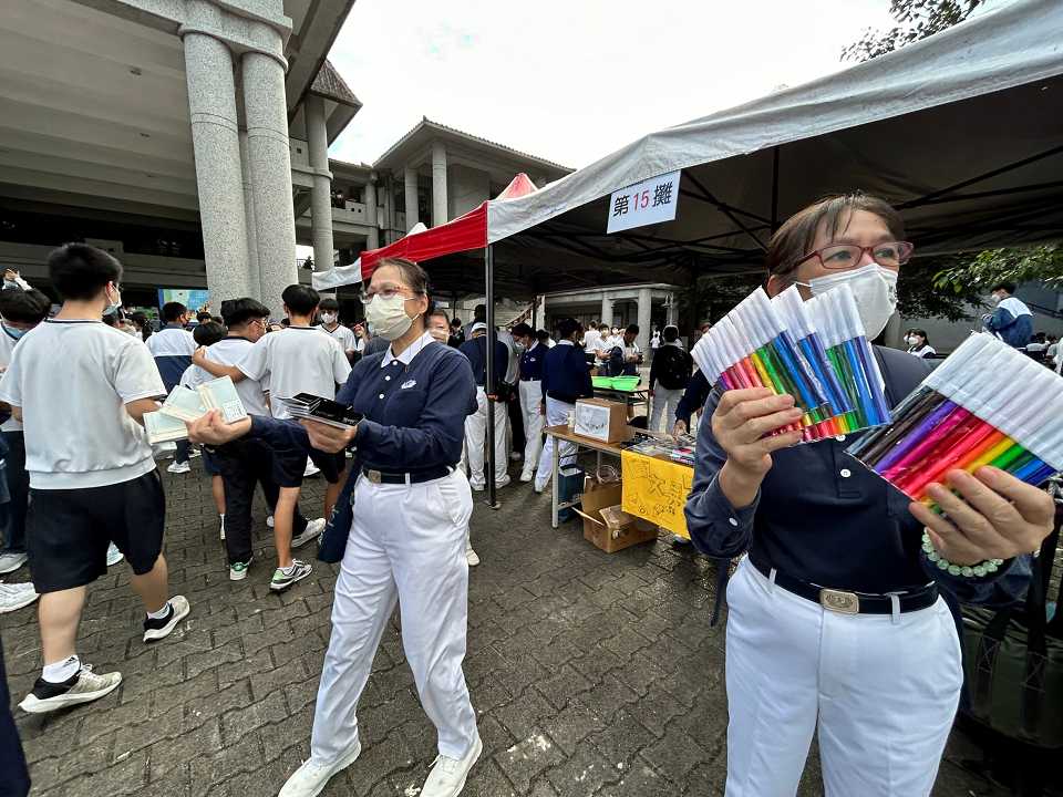 ◎「十塊、十塊」、「買到賺到,賣完就沒有了。」媽媽們卯足勁促銷帶來的彩色筆、便利貼、鉛筆、束髮帶、皮卡丘戳戳樂和好書等,不計成本,半賣半送,只要孩子們高興就好。卓錦鈺老師也來「交關」,只要十元的商品,她大方掏出一百元,還再度光臨,真是太感謝她了。