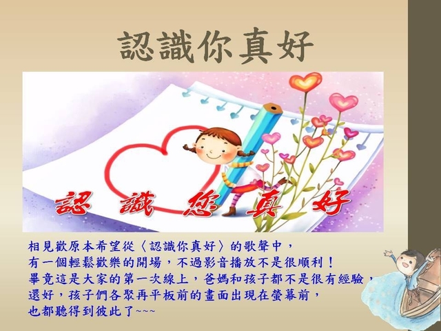 還好,孩子們各聚再平板前的畫面出現在螢幕前,