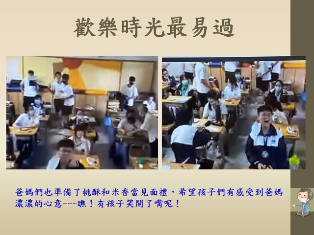 爸媽們也準備了桃酥和米香當見面禮,希望孩子們有感受到爸媽濃濃的心意~~~瞧!有孩子笑開了嘴呢!