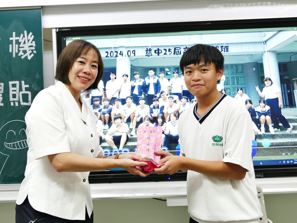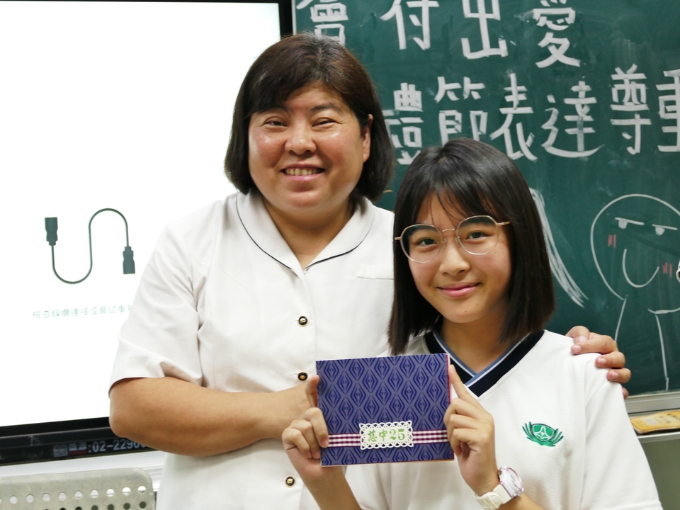 五、榮忠爸以一張手繪海報及孩子們寫滿對老師的愛送給敬愛的美燕老師,再由老師送給懿德爸媽們聯手製作全班大合照的卡片給每一位孩子,孩子們收到都非常歡喜。