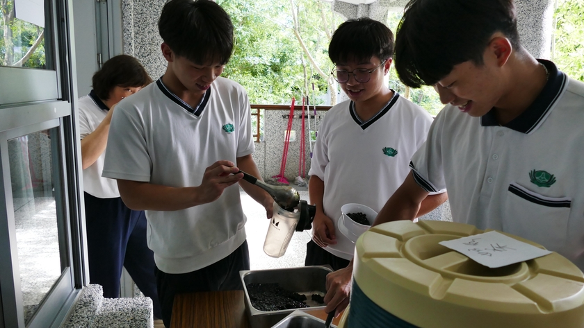 懿德爸爸媽媽準備的珍珠奶茶和小點心,同學們帶著收到的專用碗,