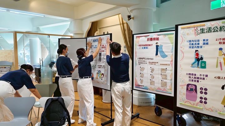 到了下午,我們前往學校去認識新環境及空間。同時也練習跑明天的行程以助新生認識禮儀分站的分工及商議。到了晚上團隊部署各組探訪部分住校生們以了解住的環境與日常生活關懷,到了宿舍房外我們懷著不確定的心躊躇不前,是否應該敲門,會不會打擾到他們?但最終,我們輕輕敲響了房門。令我們驚喜的是,開門的同學臉上洋溢著青春燦爛的笑容,這讓我們感動不已。瞬間,所有的忐忑不安都化為了溫暖與信任,我們感覺到,這就是我們之間第一次溫馨的交流與接觸,雖然只是短短的相遇,但彼此的連結已經悄然開始。