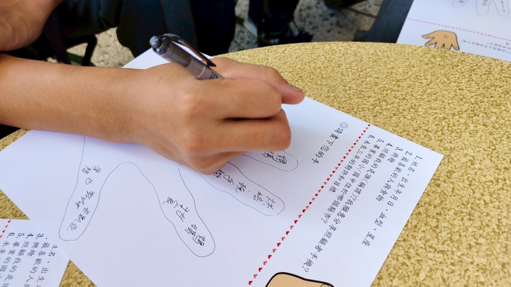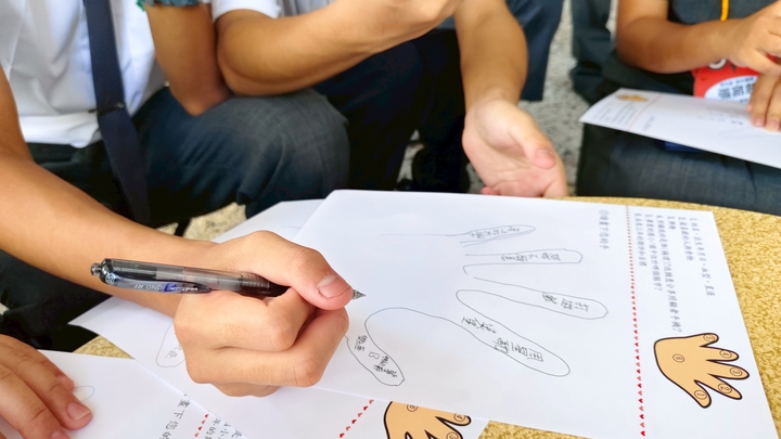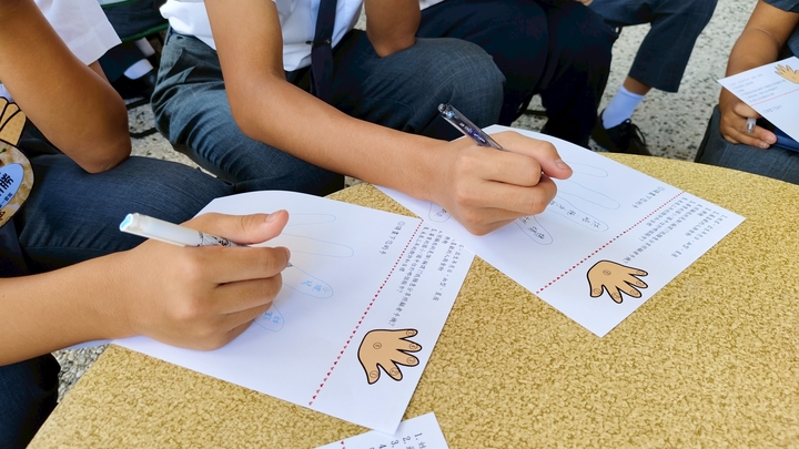 到了八月二日,我們正式與新班學生們見面,這一次以書籍為橋梁,進行了富有創意的與所有的同學第一次見面,相當有趣與創意。學生代表與班長各自拿一本同樣的書相互相認且碰撞出第一道精彩的火花。相認後,爸媽們帶著孩子們來到各自指定的區域,進行面對面的交流,並大家一起完成了五指圖的製作。