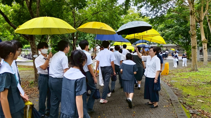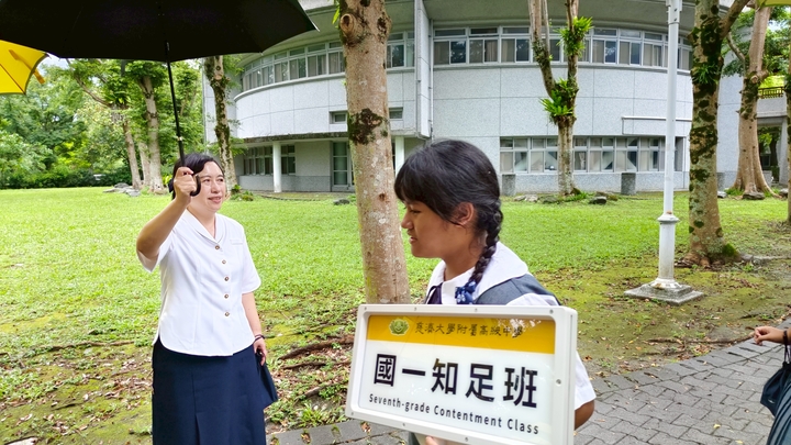 接下來孩子們繼續跑站以完成了解校內的食衣住、禮儀與環保的實際體驗活動,最終回到妙善廳一起享用午齋並聆聽校長的致詞,為大家送上了熱情的歡迎與鼓勵。有一幕十分感人,當我們前往妙善廳的途中,突如其來的雨,而廖校長立即為學生們撐起了雨傘,猶如母親般的溫柔關懷,讓人十分動容。