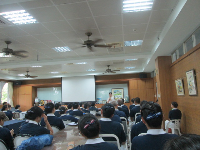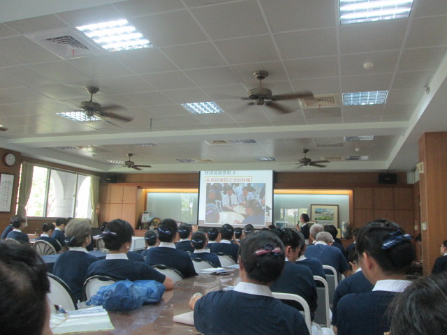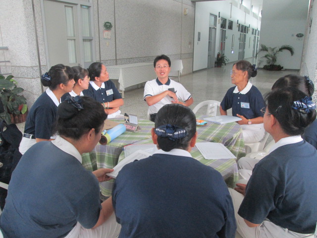 慈大附中高一大愛班倪益民老師與懿德媽媽來相會,老師就如我們的孩子一般大,陪伴班上的孩子就像照顧自己的孫子一樣心情,大家相談甚歡自在。本班慈誠懿德共有十三位,有五位新成員,需要資深來陪伴。孩子們有四十位,分組照顧,課程分工合作。