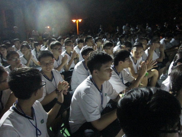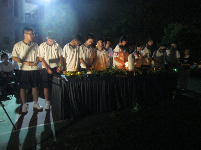 餐敘後,全體整齊列隊到廣場,進行星空下發願。孩子們端坐場內,慈誠懿德爸爸、媽媽守護在周圍,先行祈禱、宣誓、再發願,將發願卡依序掛在兩旁樹上,莊嚴的儀式,整個會場沉靜在隆重的信服中。這麼多人的守護,這麼美好的環境,身為慈中人,好幸福,一定要恆持自己當下所發的好願。