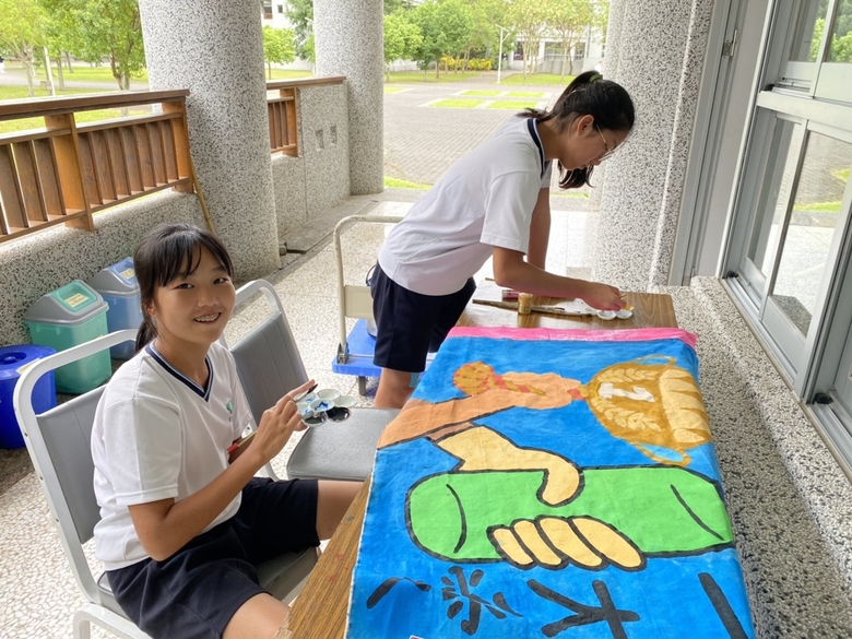圖說10:11/13下午,美術繪畫高手 - 佩蓉同學幫忙大家畫運動會班旗。