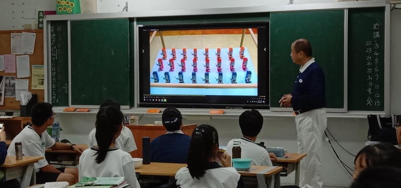 圖說1:11/13班級經營時,慶揚師兄以一段共振效益、善行相續的影片,強調團體內建立好風氣,相互影響的重要性。