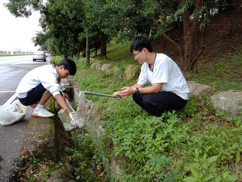 環保三十疼惜大地、守護洄瀾師長帶動;以身作則身體力行、清掃環境全校響應。