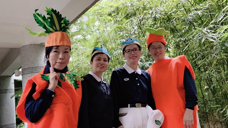 圖說11~13:11/14慈攸媽媽與祖佩媽媽,參加環保蔬食變裝-校慶入場秀。
