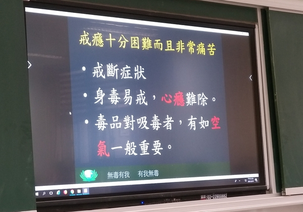 尤其,談到人生當中,有什麼事情是不可以重來時,綉滿媽媽帶著大家用心的、靜心的去思考,毒品絕對不能碰,失去健康以後,人生將會失去一切無法重來,當PPT內容呈現一張張吸毒者的相貌,從原本正常相貌臉色一直演變到槁木死灰,如同死屍般還恐怖的樣貌時,相信從孩子們專注聆聽的表情中,已深知一定會「遠離毒品、珍惜健康、感恩擁有、惜福造福」。