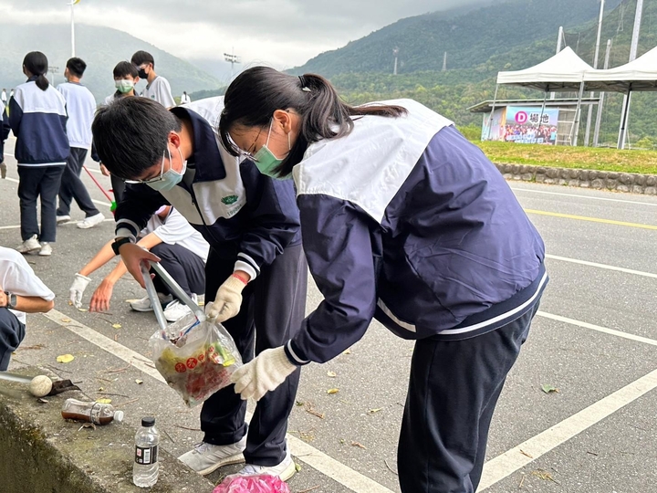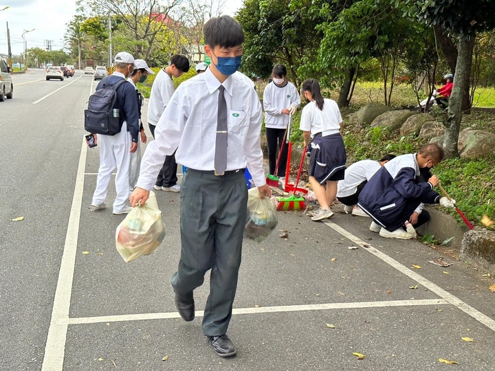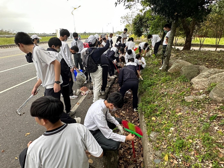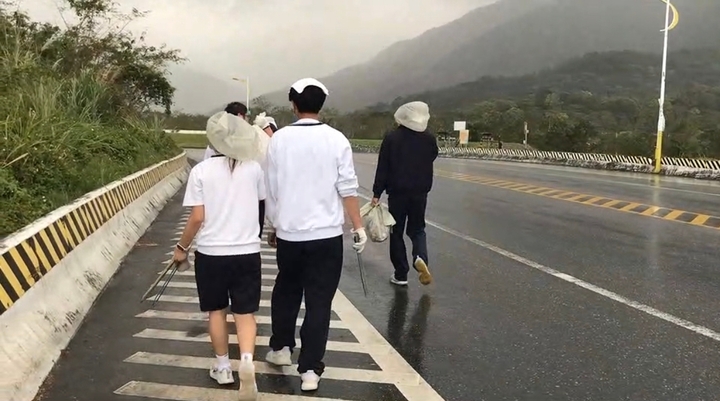班級隊伍在導師易哥帶領下往清掃區域前進,今天的地點在體育高中,有一點遠,但孩子們都能開心往目的地,開始清掃,大家都很努力也很認真,多個孩子根本像在挖寶,不放棄任何一點深埋在土裹的圾垃,但實在花了太久的時間,過了一個小時還清掃不到一半,孩子們卻愈掃愈有興趣,還愈清愈多垃圾,垃圾種類更是無奇不有,讓人難以想像。最後孩子們在老師催促下還是一一不捨,下雨了才慢慢往回走,而用垃圾袋當雨衣成了奇景。