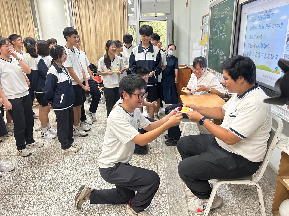 看著同學們自信地彩排,配合我們準備的禮物和點心,在「師恩深一生深」的音樂中,同學們恭敬地向老師奉茶,送上點心和卡片。老師不忘讓同學們講解卡片上的祝福與意義,學生們也慷慨地向老師分享他們的祝福內容,畫面感人至深。正如校長所說,慈大附中以善立校,這是一種永恆的信念。