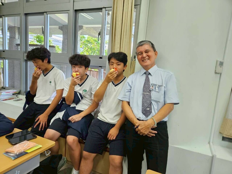 最後,是輕鬆愉快的家聚歡樂時光。孩子們一邊享用香氣四溢的老宋抓餅與爽脆蘋果,一邊分享課業心得與生活趣事。笑聲與談笑聲交織,為這場親師生共聚的懿德日,畫下最溫馨的句點。