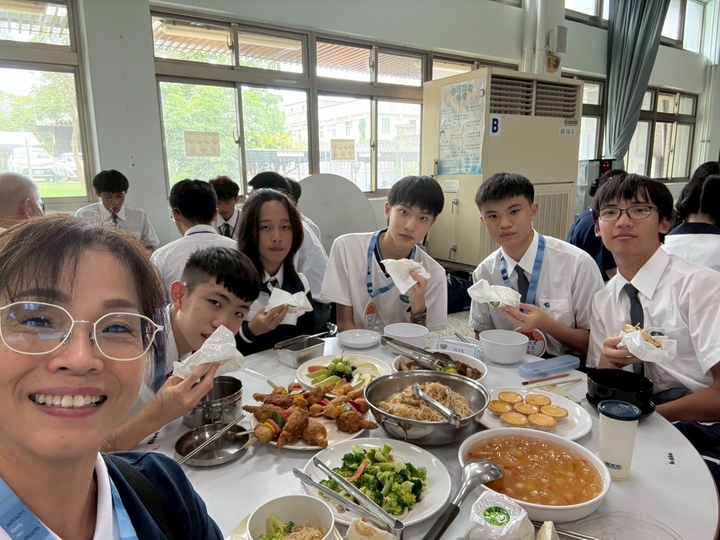 好興奮~~與孩子們共進午餐時間終於到了,用餐地點在妙膳廳,各桌分配兩位慈懿爸媽與孩子同坐,彼此陌生,該如何進行第一次對話呢?這時,讓我想到前一天,慈大諮商中心林心理師教我們與小孩可以談的話題,我把可以聊得話題派上用場,那就從孩子們生活作息聊起吧!為能拉近彼此間的距離,我問問孩子在學校住宿情況,宿舍設備是否完善,與同住的同學相處融不融洽,是否清楚同寢室室友從哪裡來,也聊起孩子國中(小)階段就讀哪一間學校,新生報到後認識多少的新同學,聽一聽、聊一聊,孩子多半都還在適應校園生活。飲食部分,針對學校提供的素食餐,聽聽看孩子吃起來覺得口感如何,孩子們給的回應都能接受。時間一分一秒過,用完餐,孩子先行離開妙膳廳回到教室。