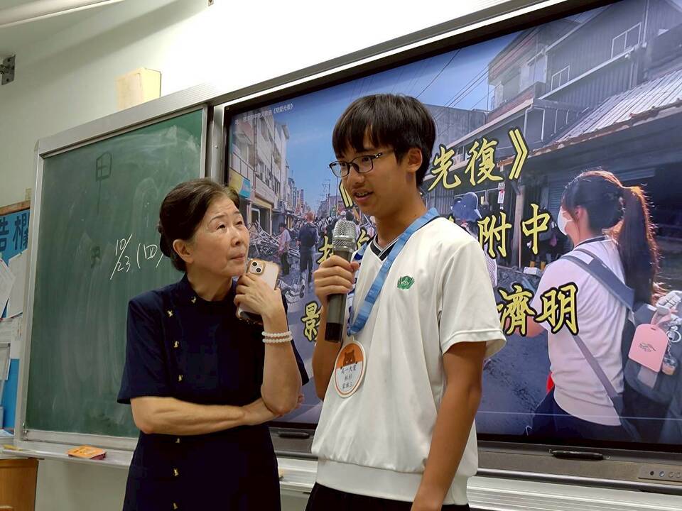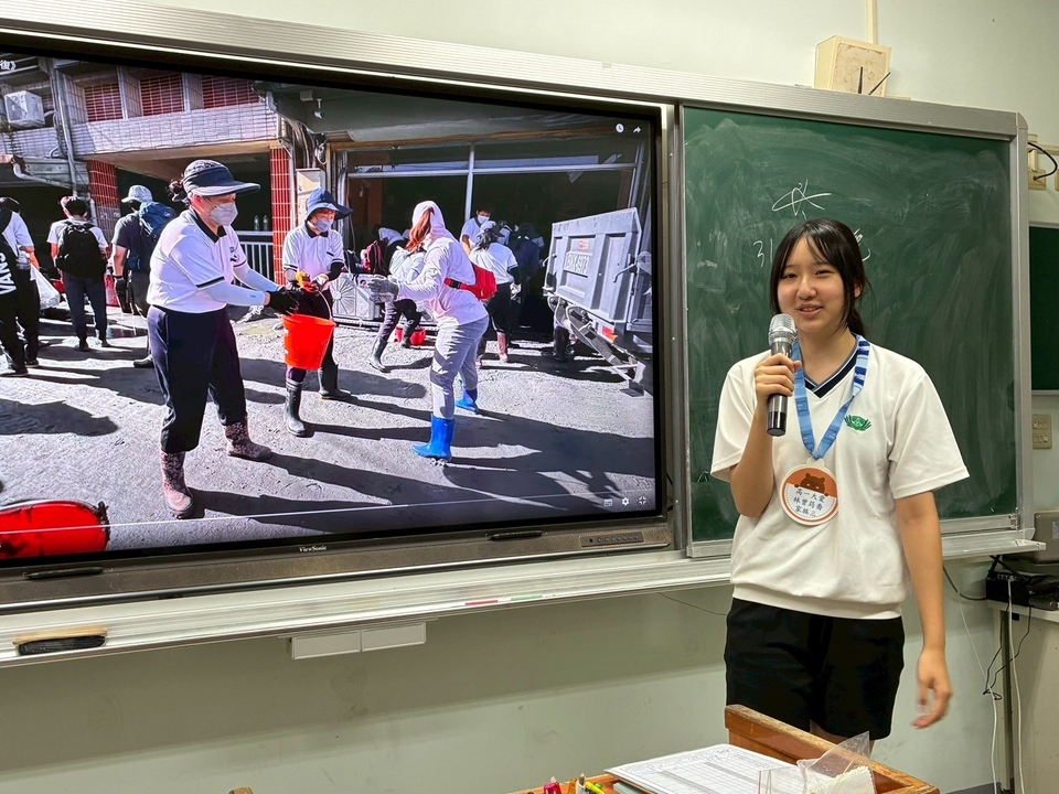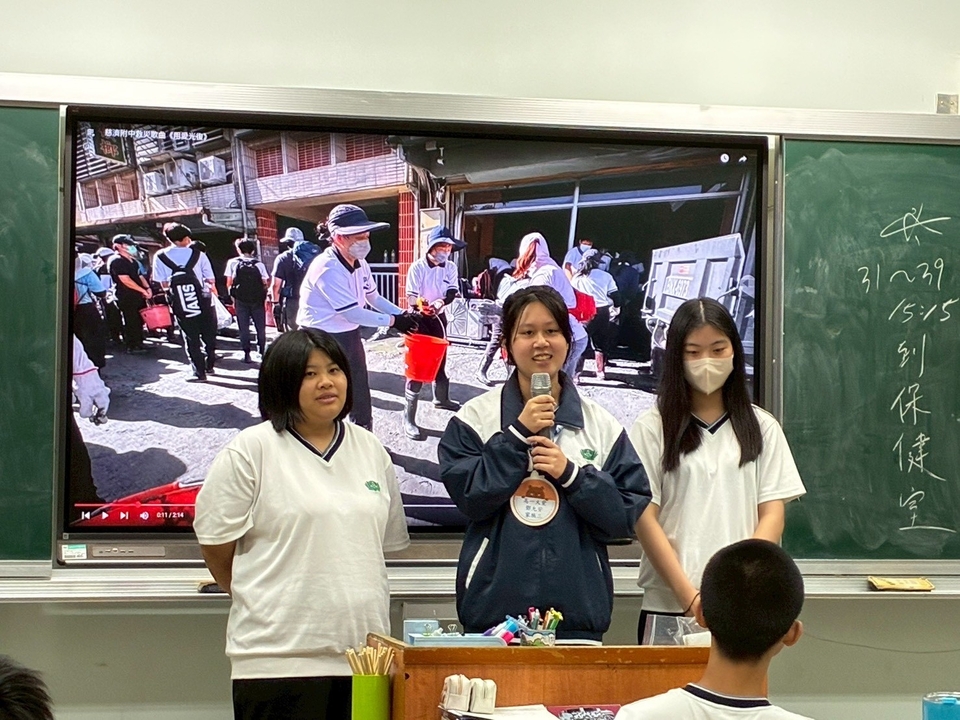 素貞媽分享完後,詢問同學對影片的看法,也詢問是否有同學曾到光復鄉幫忙,結果本班真的有同學去光復打掃或發物資。