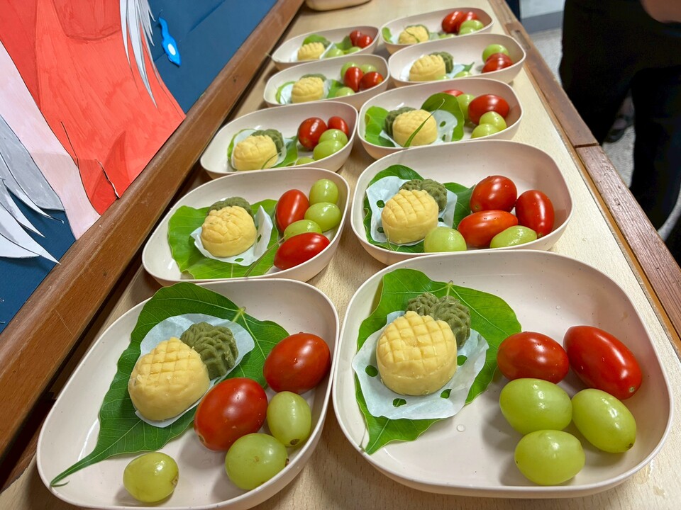 接下來為班上6~10月份共17位同學壽星慶祝,大家齊唱生日快樂歌並頒發生日禮物。因為配合校方健檢,部分同學輪流前往而不在位子上。同時㦤德爸媽準備的水果點心裝小盤給每位同學分享。也看見林俊宇同學在立體卡片空白處記下每位爸媽的名字與縣市的地名。
