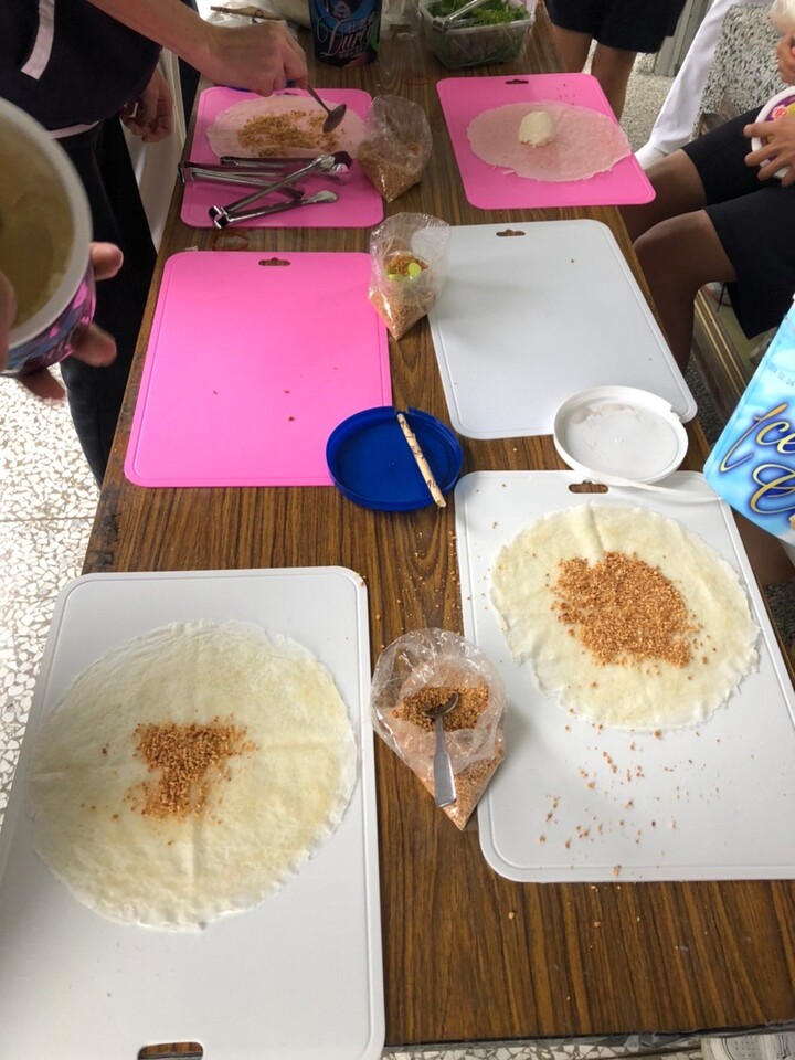 原來生活上也可以透過一日五善的蔬食生活拯救我們的地球,玉梅媽特地準備了春捲冰淇淋點心,讓孩子們動手做春捲,在微熱的天氣中帶點涼意。