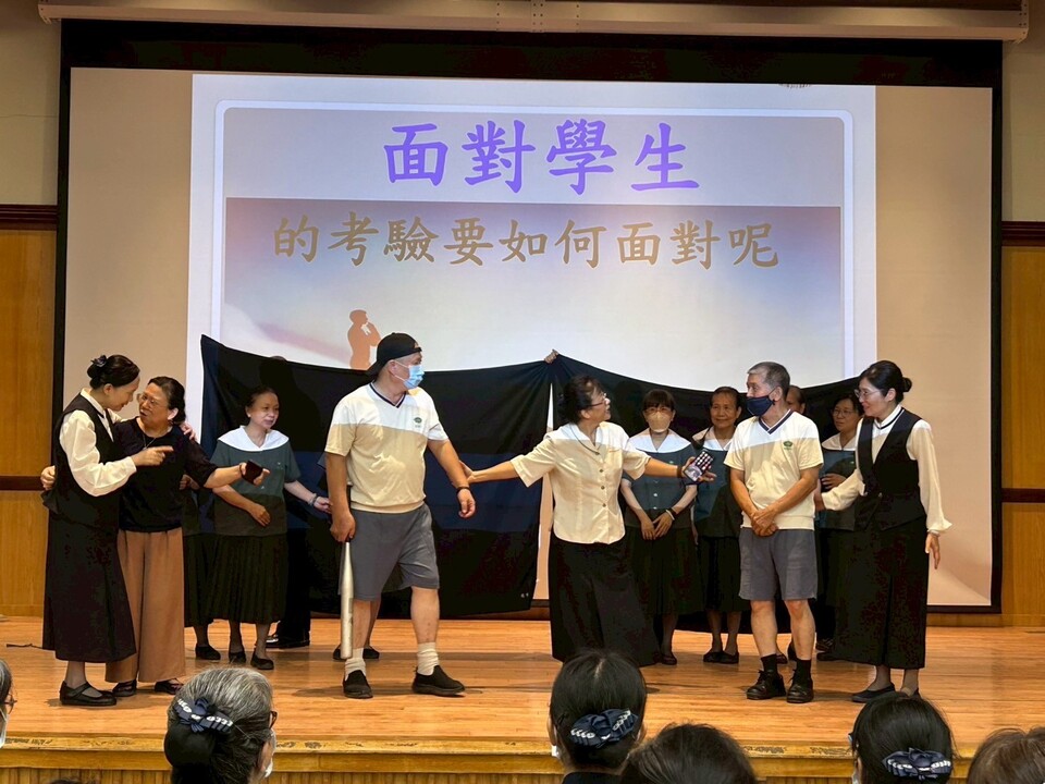 慈懿會爸爸媽媽為了歡送玲惠校長這8年(2016一2024)對慈中的付出與奉獻,由榮忠爸爸、秀蓮媽媽、秀美媽媽共同策劃製作的短劇,演出玲惠校長在慈中3000多個日子裡的生活點滴及趣事,過程中年近半百的每位慈誠懿德爸媽飾演校長、主任、老師、學生的畫面也讓大家猶如回到當年青春洋溢的氛圍。後續由慈懿會代表贈予校長許多代表物及各年級的祝福: