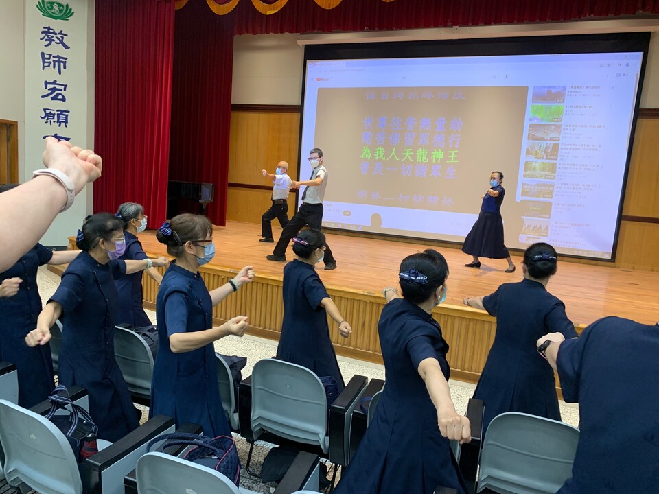 由維揚師兄帶動「梵唄健身傳法操」,透過健身不忘聞法,將法內化於心,安定身心。